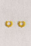 Evoke the warmth of golden summer days with the Marigold — a radiant celebration of light and texture. Inspired by the natural symmetry of sunbursts and botanical crowns, these golden hoops feature intricate beaded detailing that fans outward like delicate flower petals kissed by sunlight. The perfect blend of bold and ethereal, they frame the face with a subtle yet striking glow.