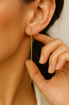 A line of light, elegantly drawn. The Vega Gold Threaders are sleek and whisper-thin—crafted with high-quality gold plating for a gleaming finish that feels refined and radiant. With their effortless pull-through design and ultra-minimalist silhouette, they offer an elevated take on simplicity.