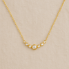 A soft shimmer in perfect symmetry. The Celina Gradient CZ Necklace features a graceful arc of bezel-set cubic zirconia stones arranged in a gentle water drop gradient, centered on a fine chain of 18K gold-plated 925 sterling silver.