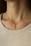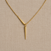 Modern lines meet golden edge. The Solara Double Spike Necklace features two sleek, elongated spikes—one fixed, one gently swinging—crafted in a high-shine gold-plated finish for a striking yet minimalist look.