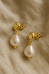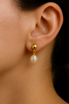 Raw beauty meets refined shimmer. The Odessa Pearl Drop Studs feature uniquely shaped pearls suspended from sculptural, molten-inspired studs—crafted in sterling silver with a glowing gold-plated finish.