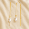 Whisper-light elegance with a celestial glow. The Oriana Teardrop Pearl Threaders feature a fine gold-plated chain that threads through the ear, ending in a luminous teardrop pearl that sways with every movement.