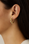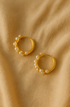 A golden embrace of light and sea. The Ivy Pearl Twist Huggies feature a sculptural twist of gold-plated sterling silver wrapped in petite freshwater pearls—each one hand-placed for a soft, luminous glow.