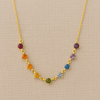 Brighten your look with the Scarlet Necklace, a playful and elegant celebration of color and sparkle. Crafted from 925 sterling silver with a luxurious 18K gold plating, this necklace features a delicate arc of multi-colored cubic zirconia stones arranged in a fluid, linked formation.